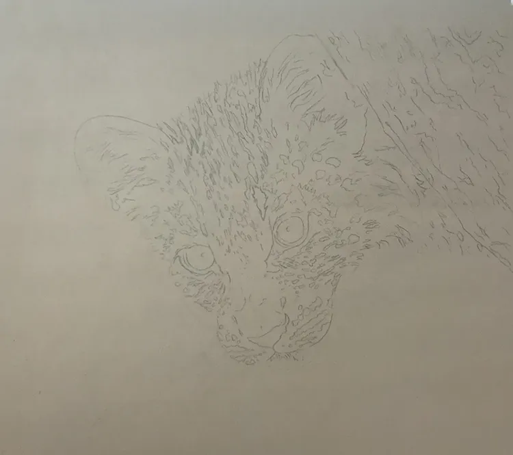 I first sketched the outline before adding a blurred light green background with dappled light