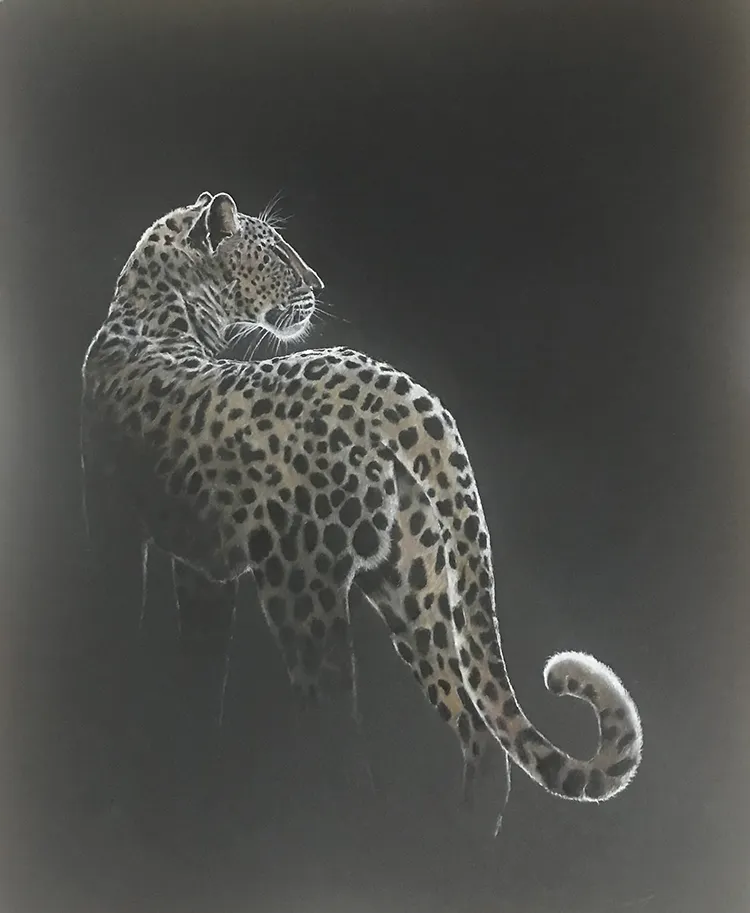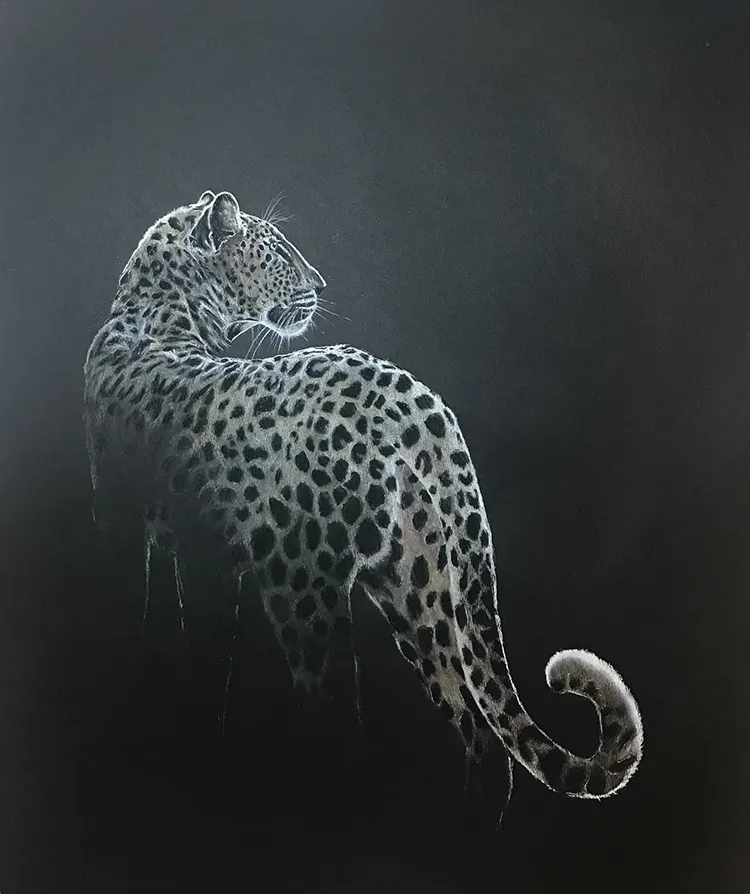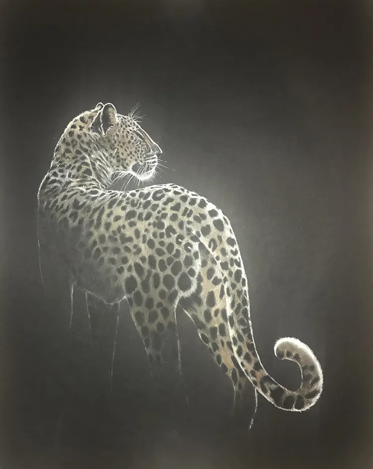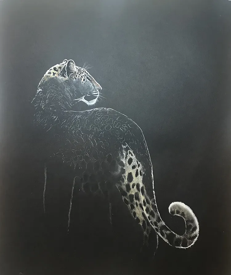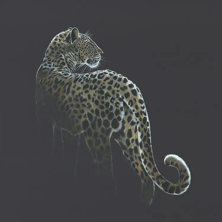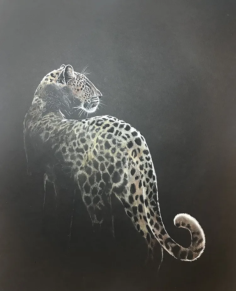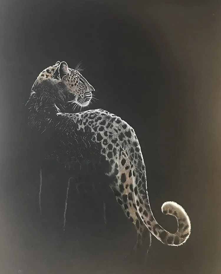 I've sketched this moonlit image of a female leopard as she pauses to look back