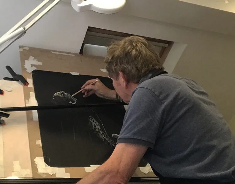 Here I'm working around the eye of the leopard whilst using a steadying bar to rest my wrist.