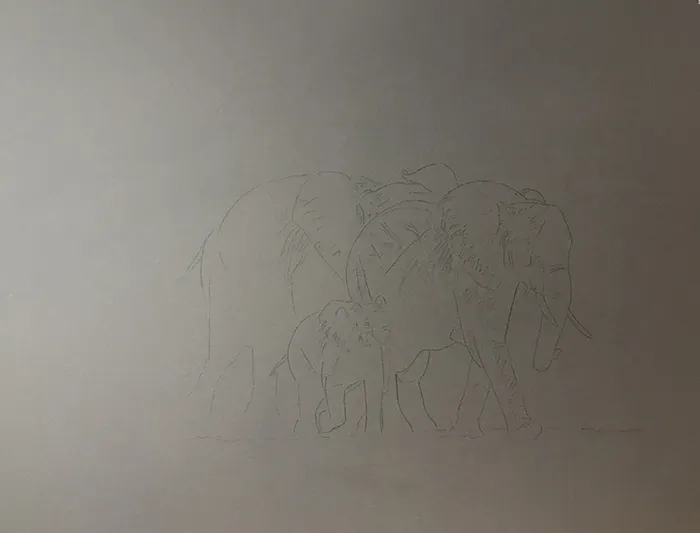 I worked on the back elephant then moved onto the darker shadowed rear of the calf