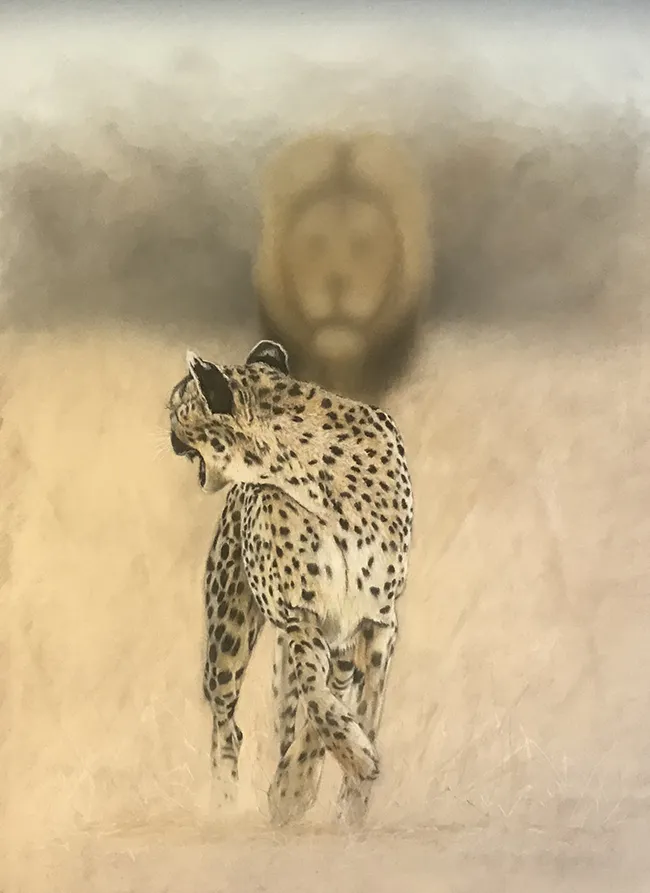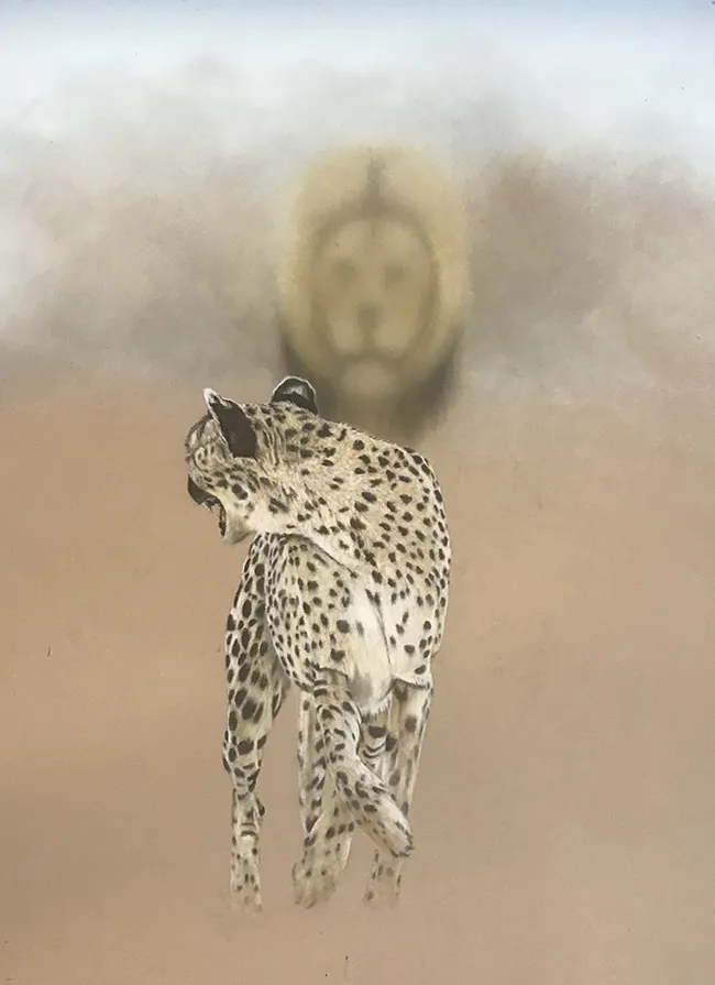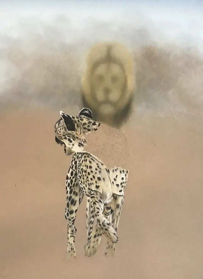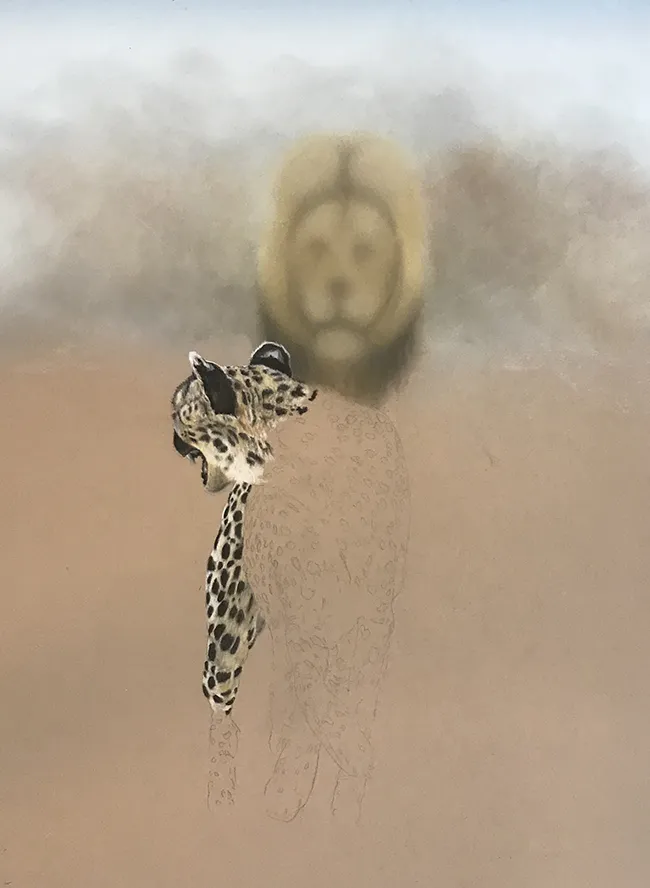 Easel 2: I'm adding some of the highlights to the top of the cheetah's flank
