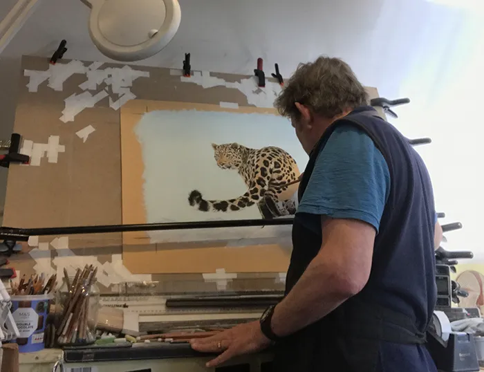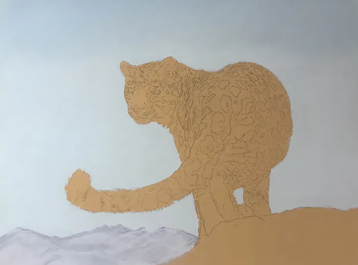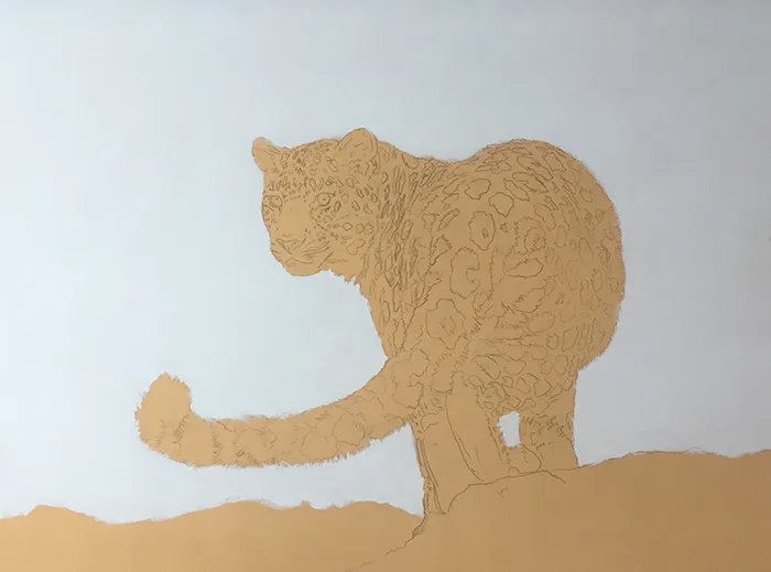 Here I've lightly pencilled in the motionless posture and markings of the leopard