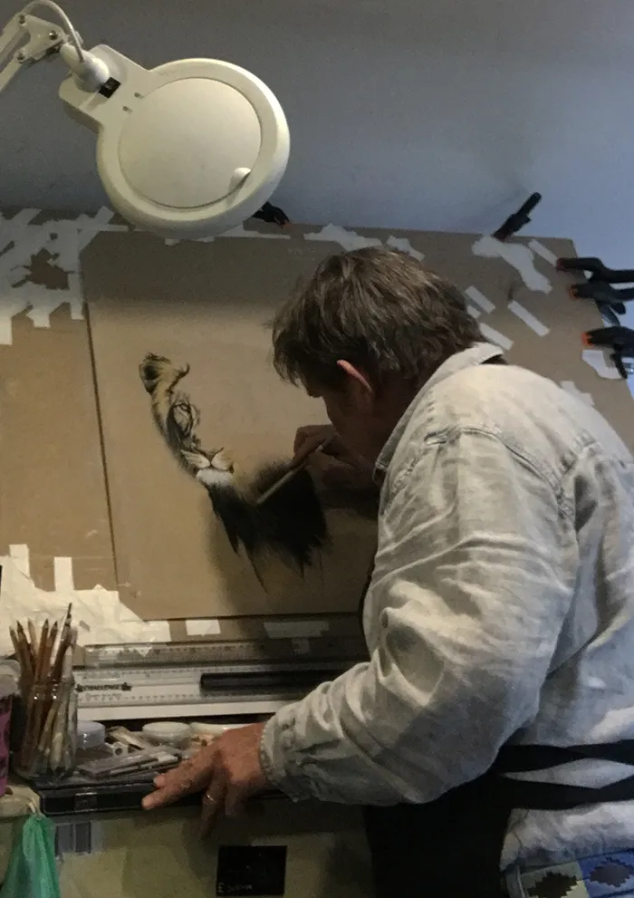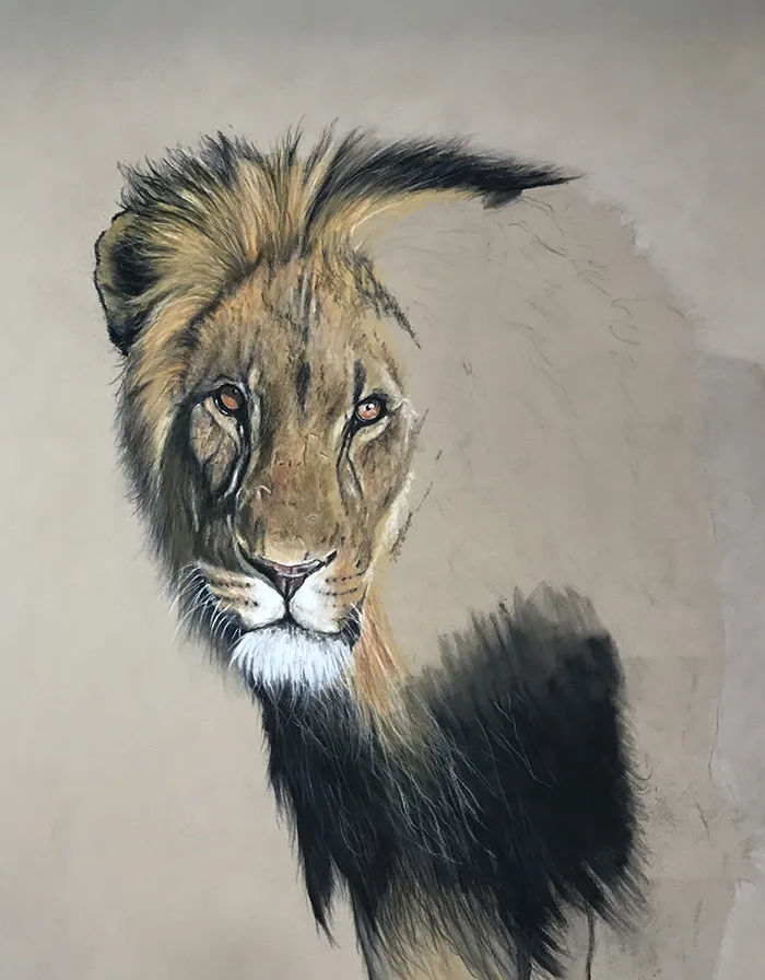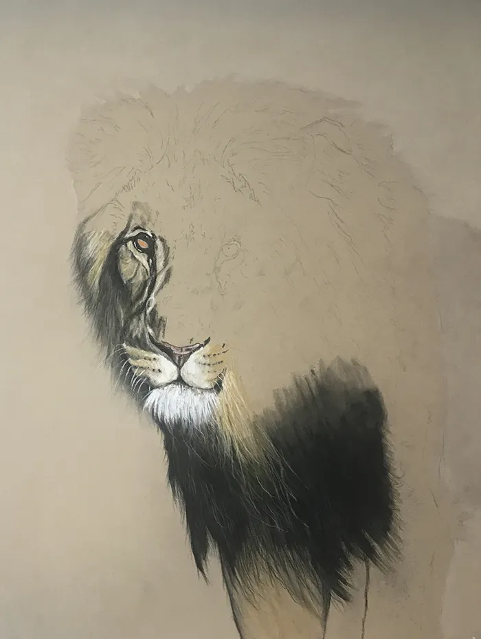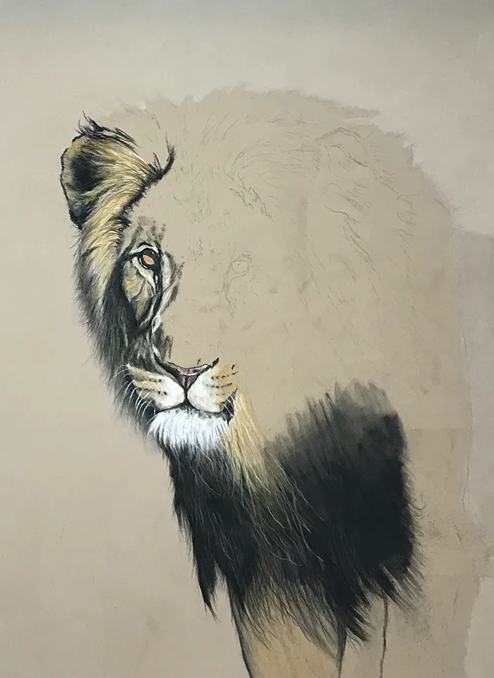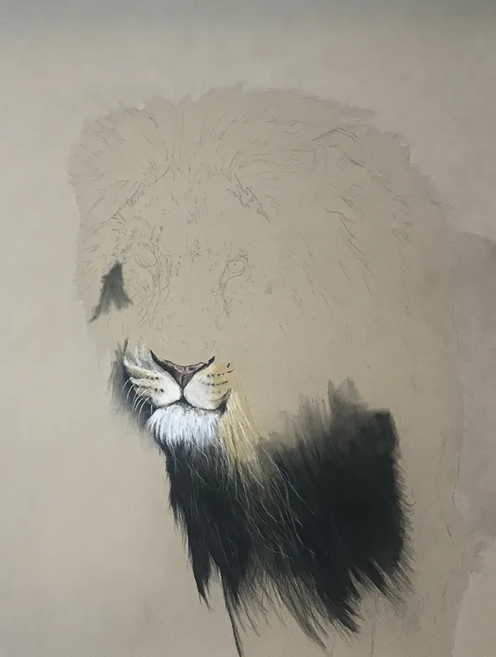 I started this portrait of the lion by lightly sketching in some rough outlines