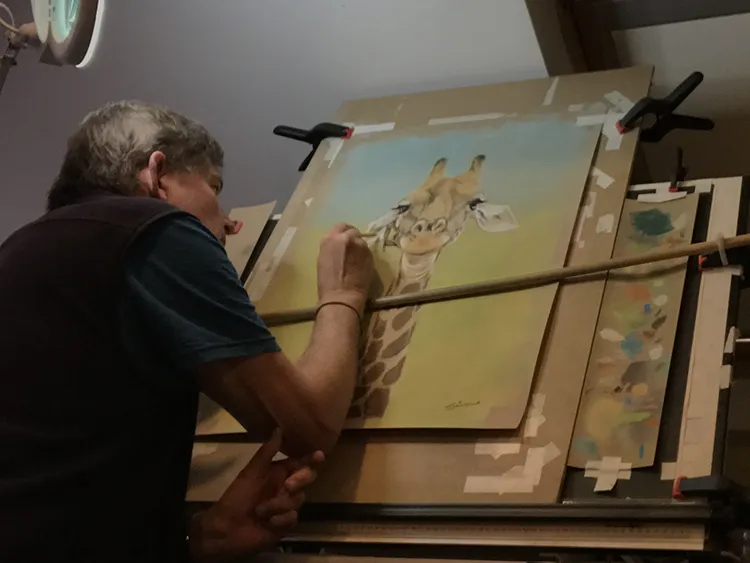 Adding the finishing touches to the left ear before sending it to get scanned and then framed