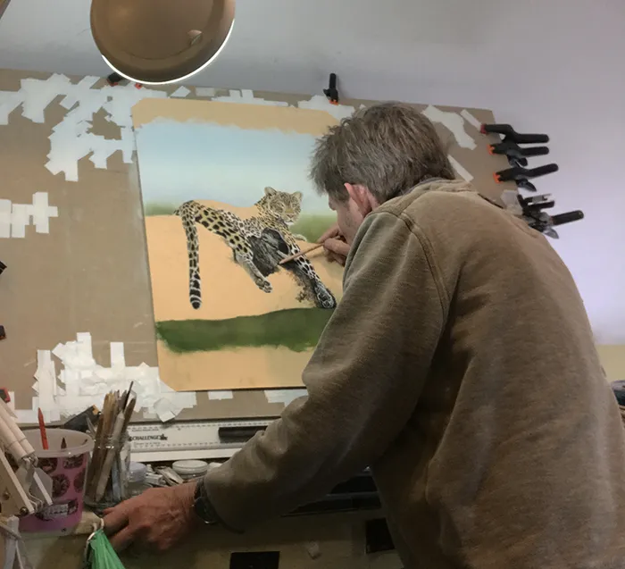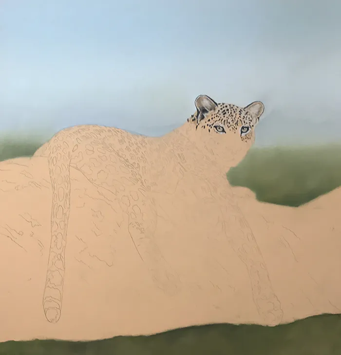 I then added a suggestion of tree tops below, before moving onto the leopard's face