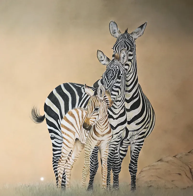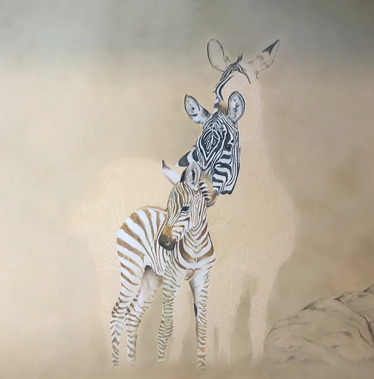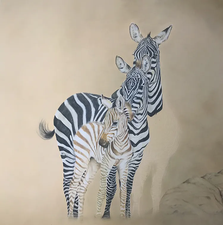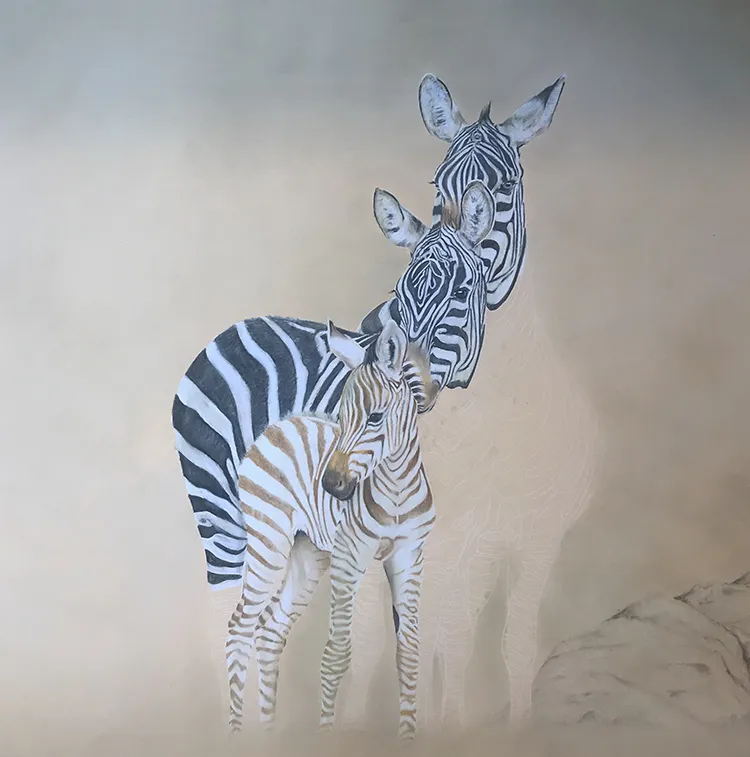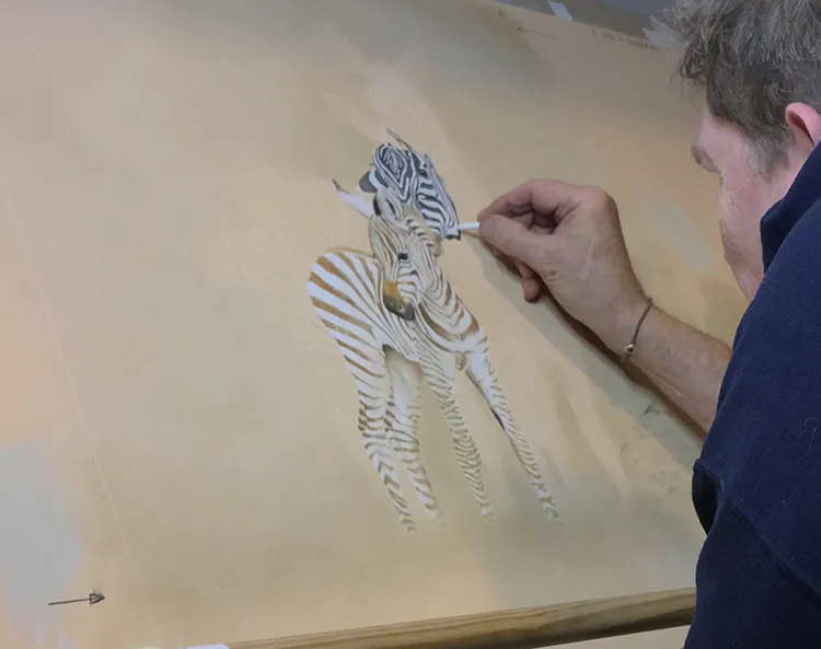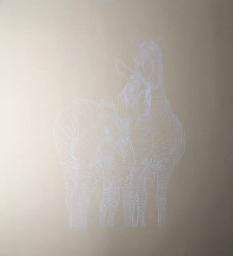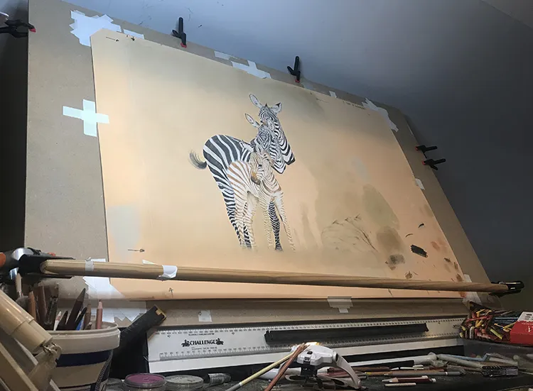 Starting to sketch and fill in the stripes of the two back zebra which tend to darken with age.
