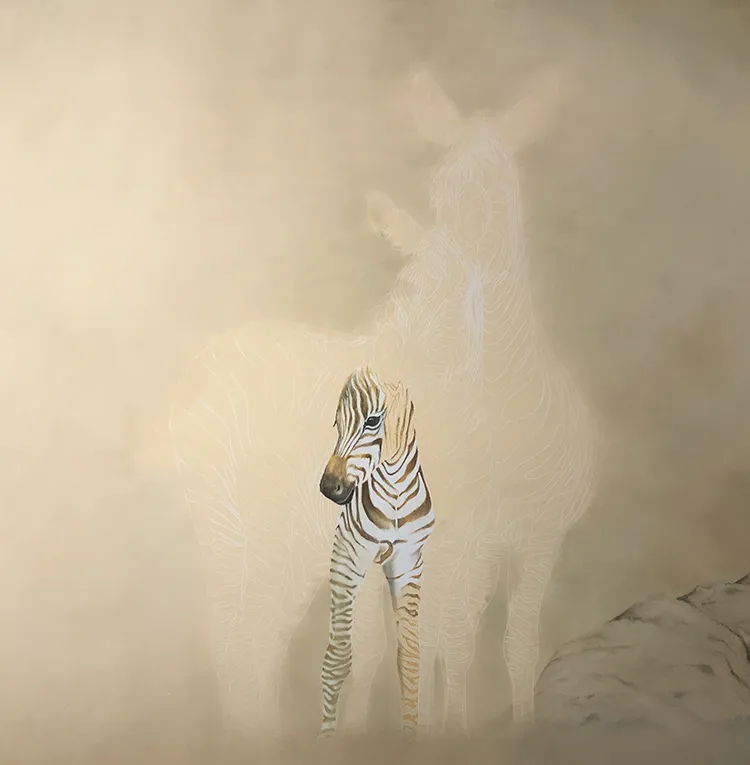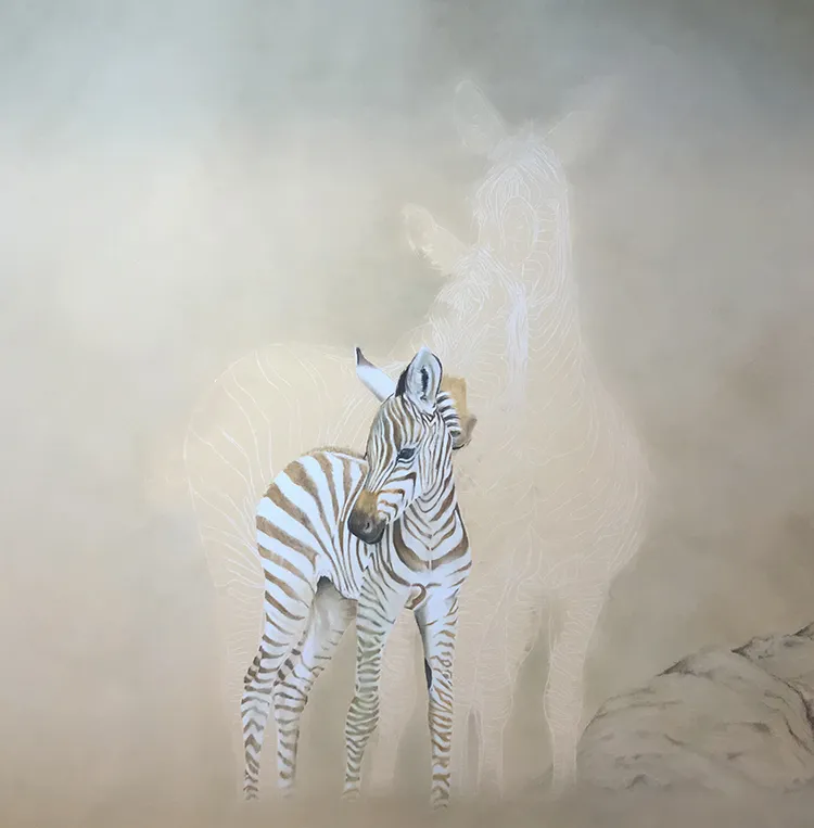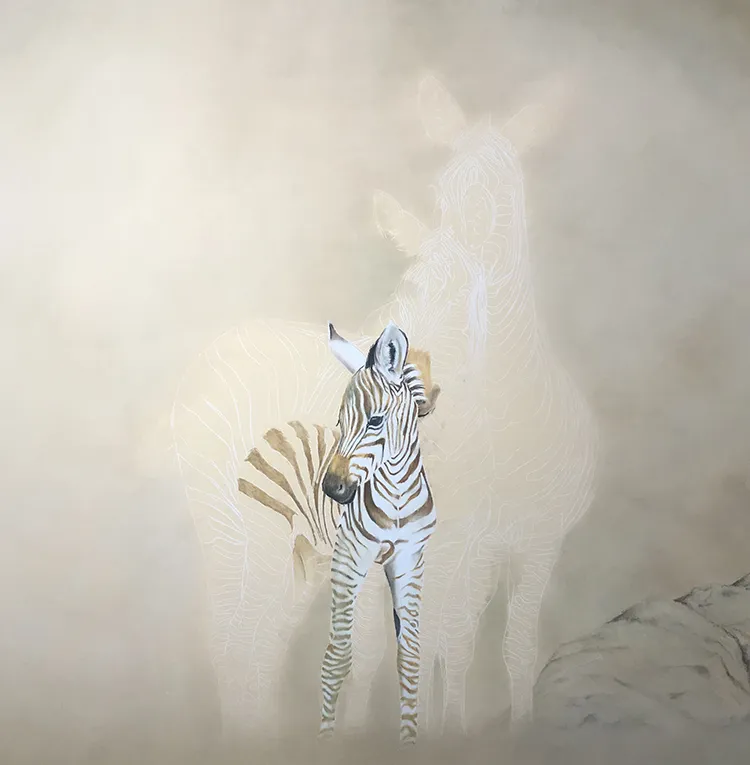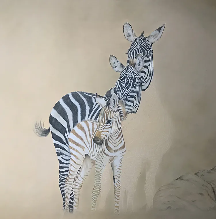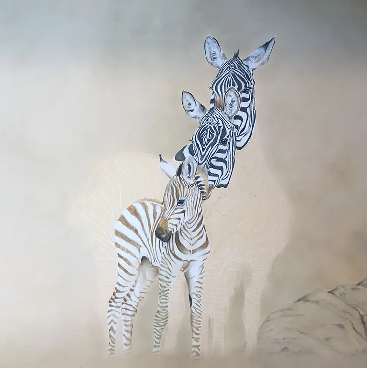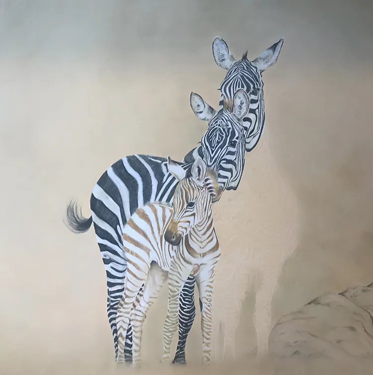 Starting to sketch and fill in the stripes of the two back zebra which tend to darken with age.