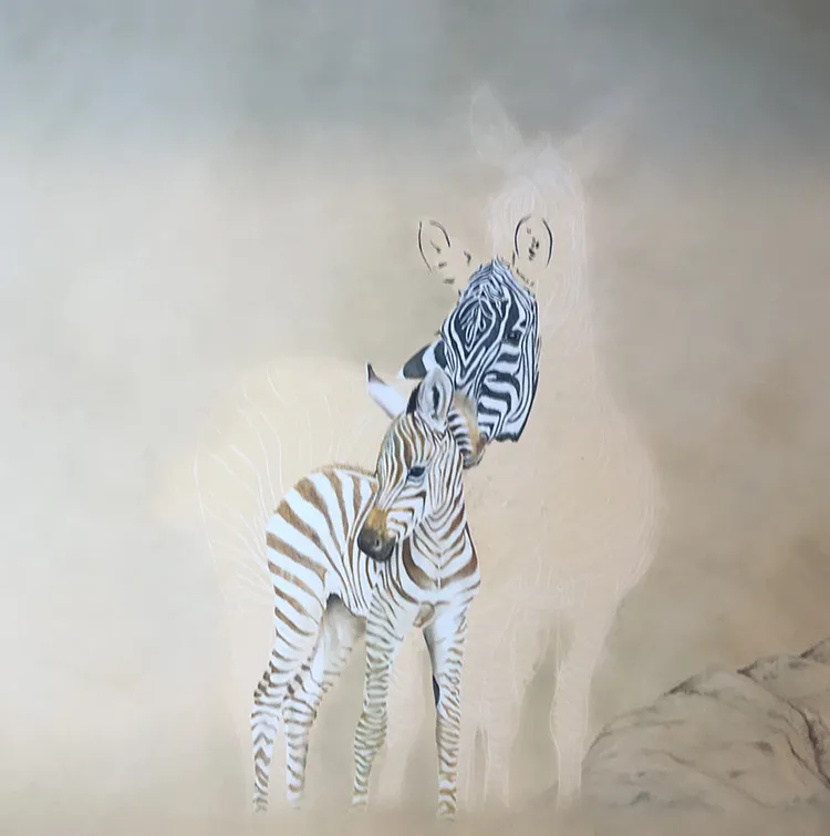 The little foal is now partially done as I move onto sketching the two zebra directly behind it