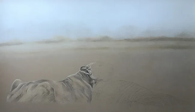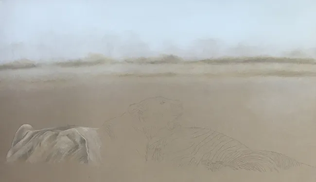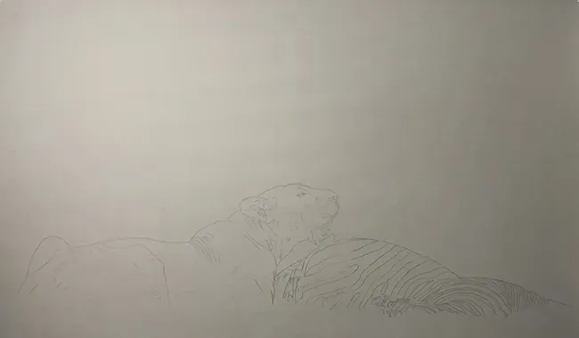 I've sketched in the outline of the lioness along with the prone zebra