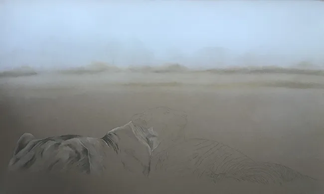Here I can be seen softening the background using a paper blending stump