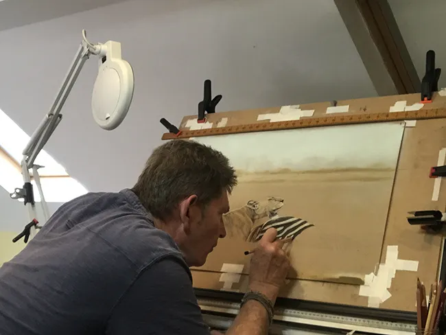 Here I am working at my Easel as I add the the black stripes of the fallen zebra