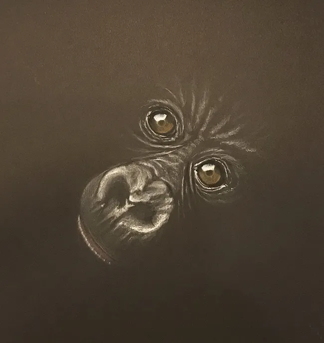 This is a sketch of a soulfull looking young gorilla. I first sketched this gorilla in 2003 with the title "Windows to the soul" which proved very popular