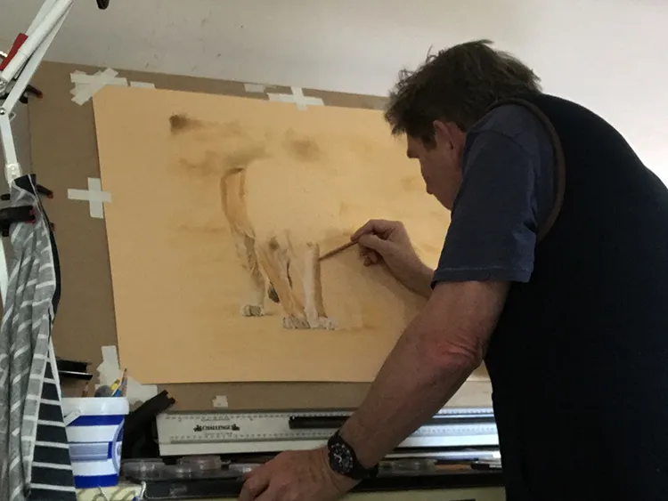 Gradually the lioness's features and tones are beginning to take shape