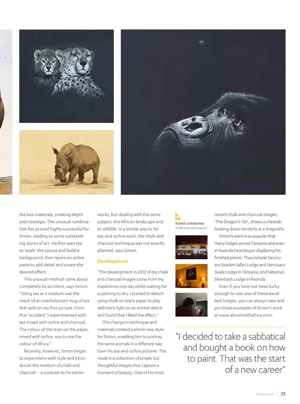 Artwork in Travelsmart Fastjet's inflight magazine Travelsmart has featured Simon's art in their February/March publication. www.fastjet.com< Back to Article List
