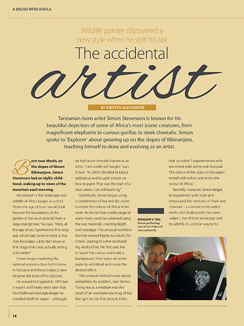 Explorer Magazine A Feature on Simon's art in Auric Air's In-flight magazine www.auricair.com< Back to Article List