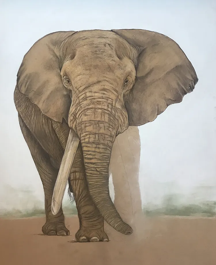 I gradually started to fill in his leading leg and then moved to his distinctive left tusk
