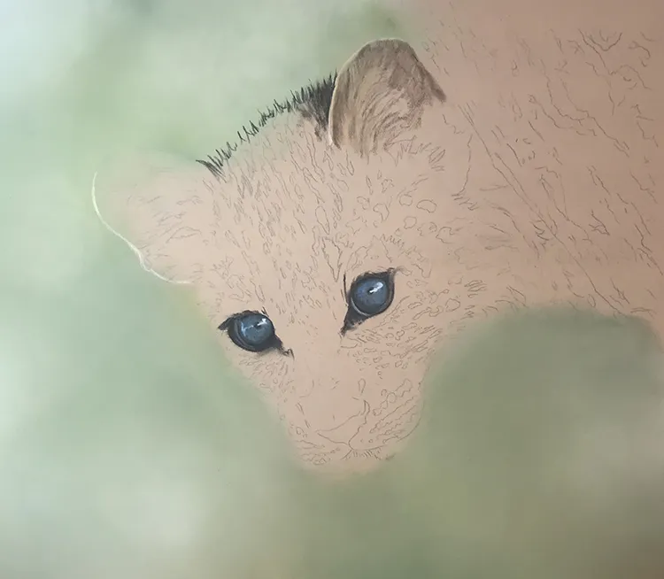 I first sketched the outline before adding a blurred light green background with dappled light