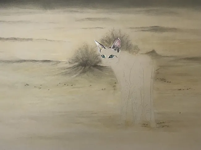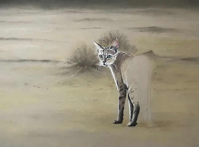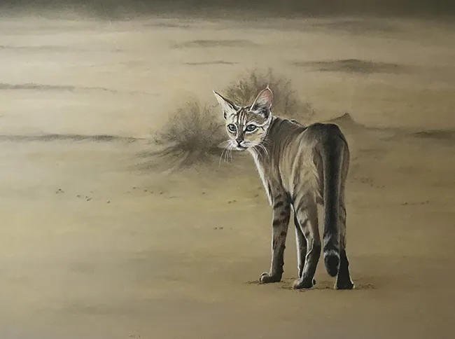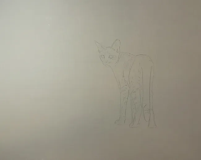 I've lightly sketched in the African wildcat glancing back, as a rough guide