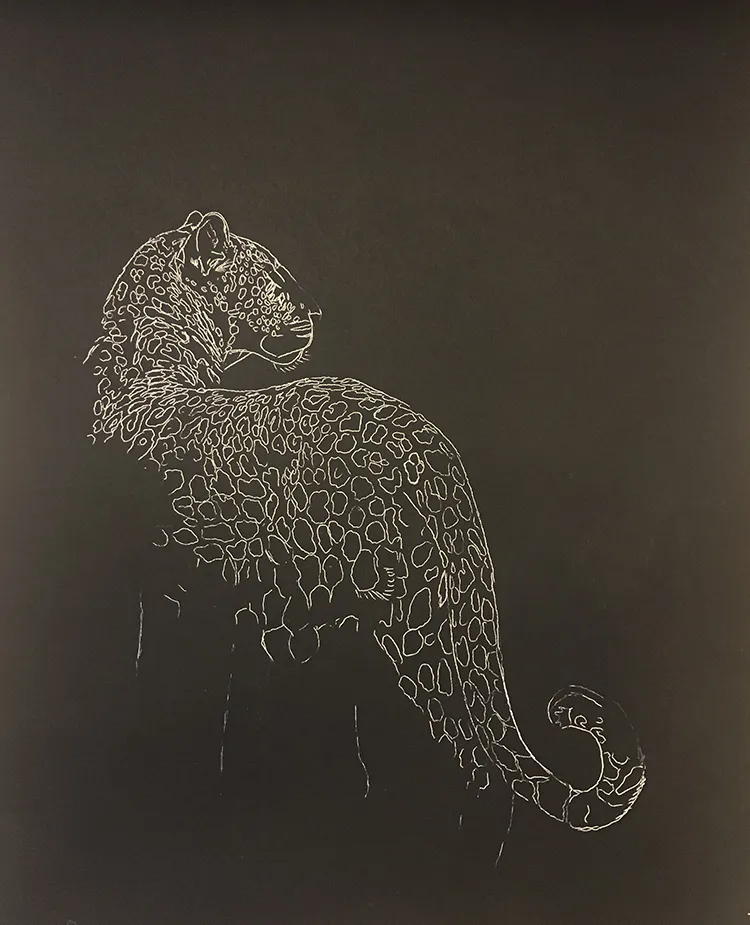 Here I'm working around the eye of the leopard whilst using a steadying bar to rest my wrist.