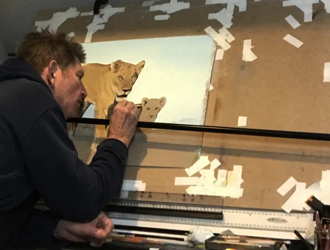 Working at my easel adding some fur to her upper leg