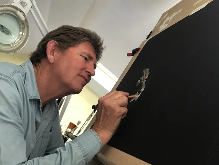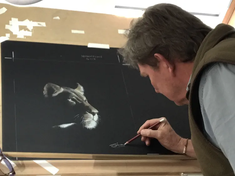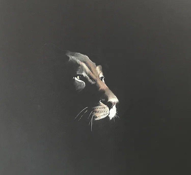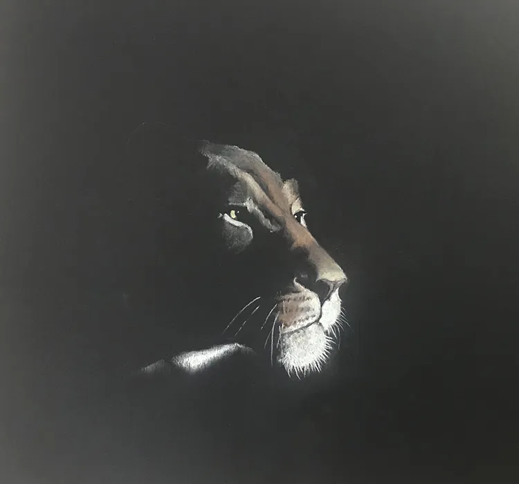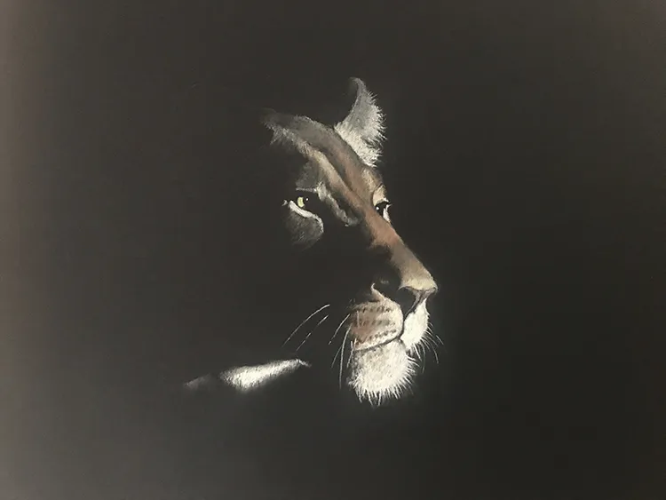 Working on the cheak and whiskers before moving onto the chin and neck as she stretches forward