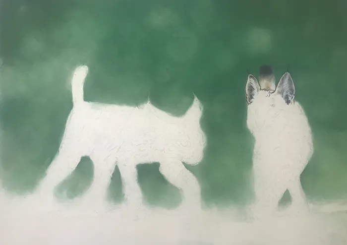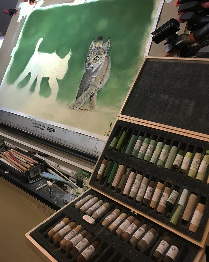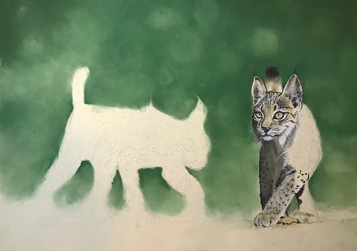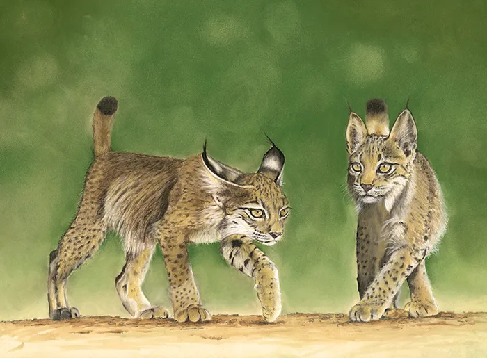 This ia a sketch of two Iberian Lynx kittens looking for trouble. It's been sketched using the medium of pastel on pastel paper whilst using a series of beautiful reference photographs taken by Ayala Fishaimer.