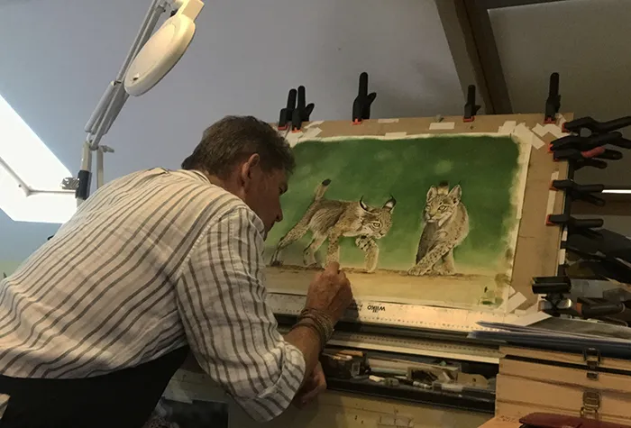 I'm now working from the chin and its ruff, down its body to its leading paw