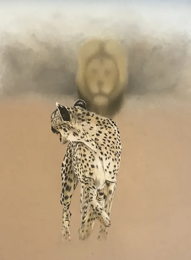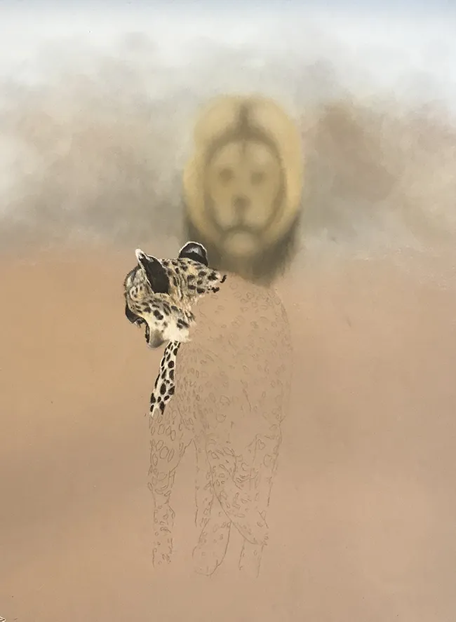 Easel 2: I'm adding some of the highlights to the top of the cheetah's flank