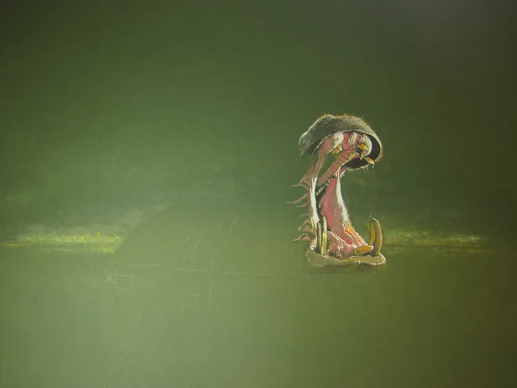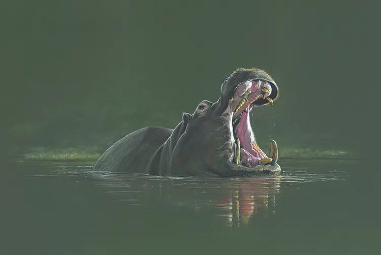 A bull hippo yawns its dominance within its territory