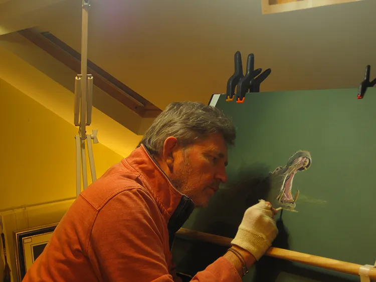 Using the magnifyer to do a bit of dental work and on the right adding some water bubbles.