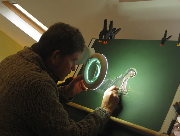 Looking at the massive jaw through the light magnifier.