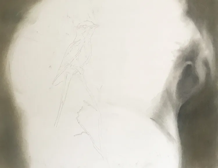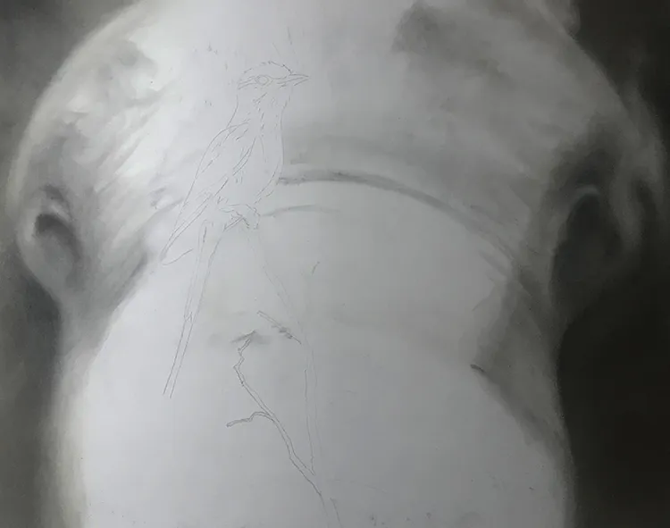Marked up the position of the roller, now beginning to fill in the elephants head