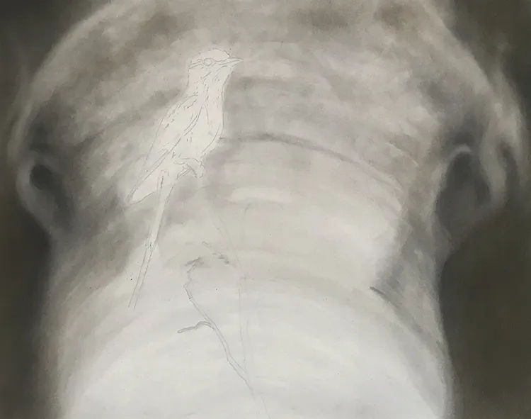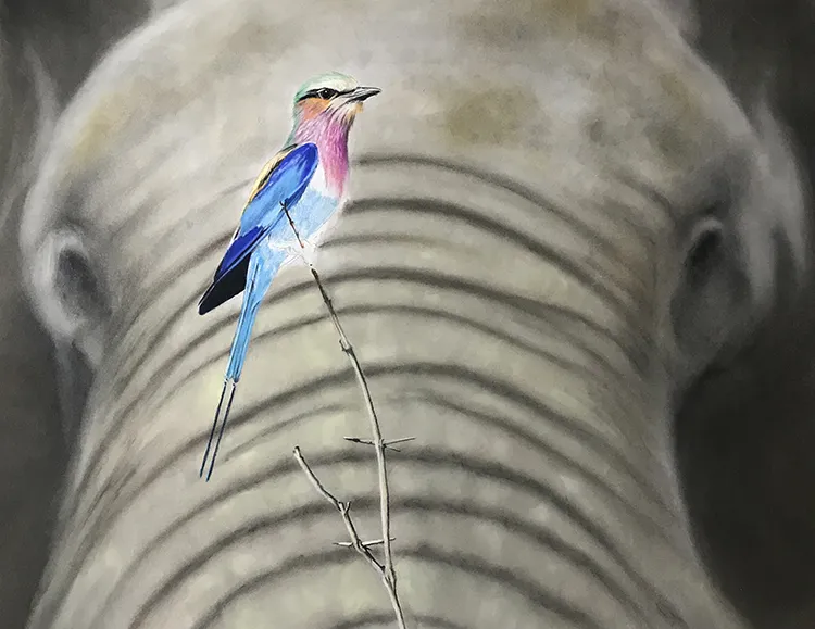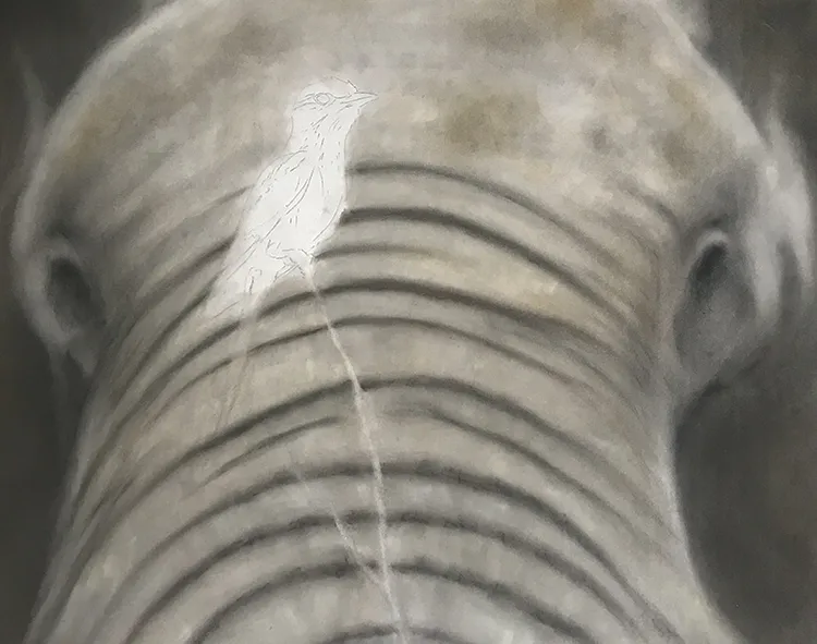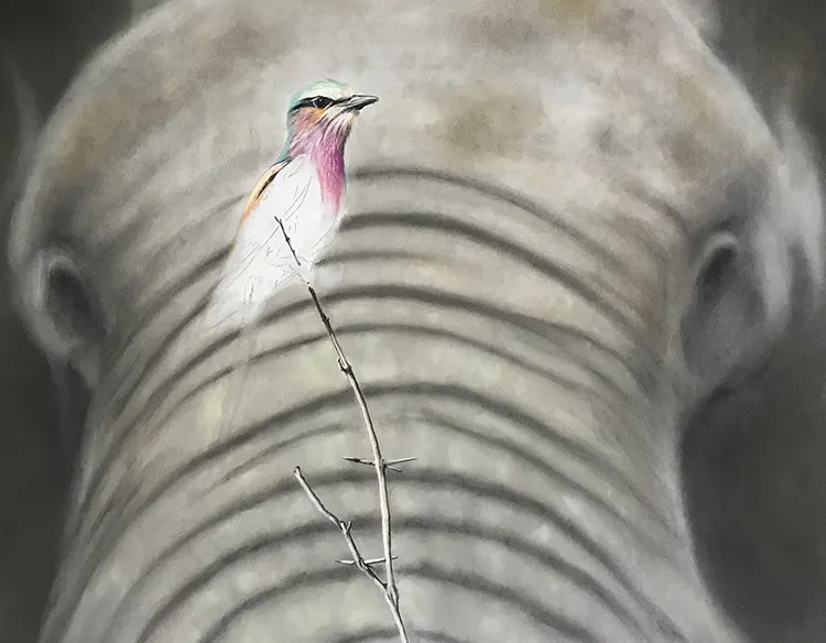 Elephant is beginning to come along, working on the twig before starting on the Roller