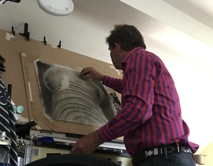 Putting the finishing touches on the Roller before moving back to the elephant.