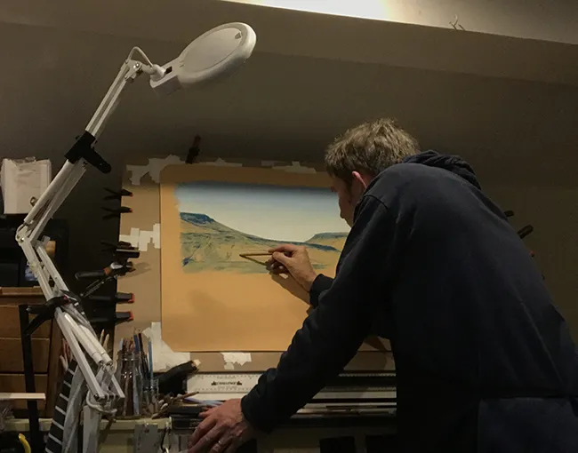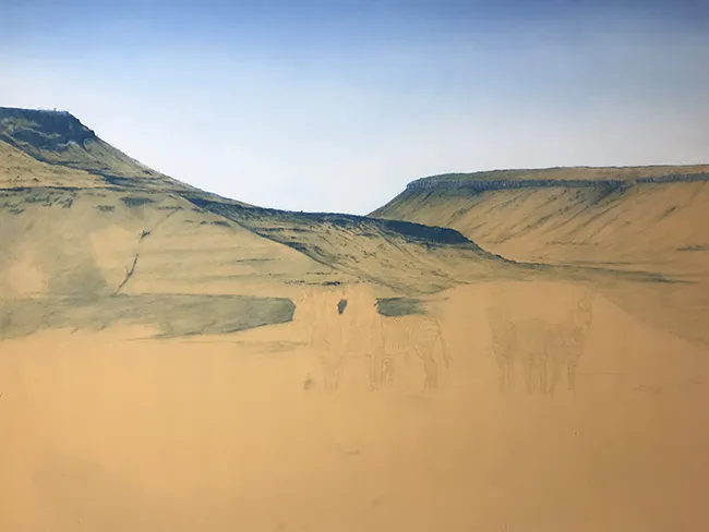 I'm starting to add the distant escarpment which moves left to the right from the centre.