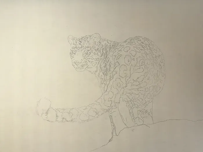 Here I've lightly pencilled in the motionless posture and markings of the leopard