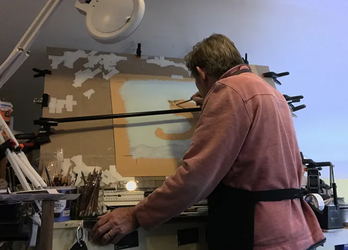 I've added Unison Light Blue 16 for the sky before adding the lower mountain range