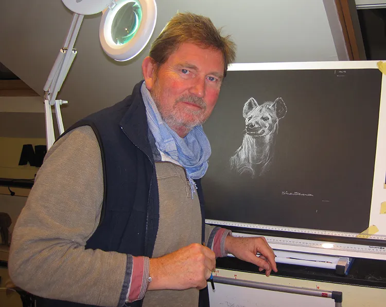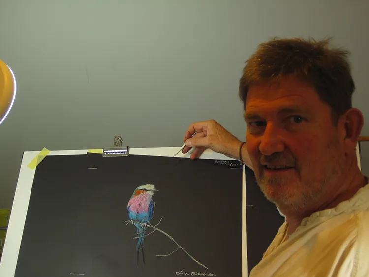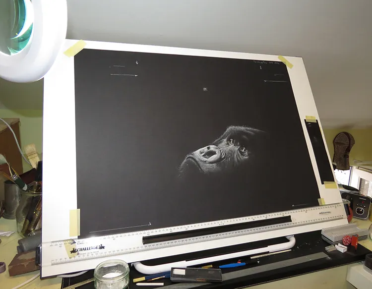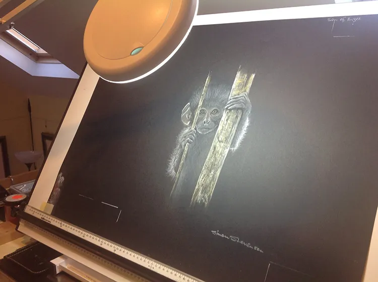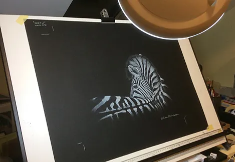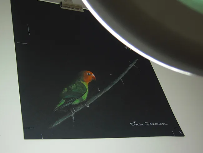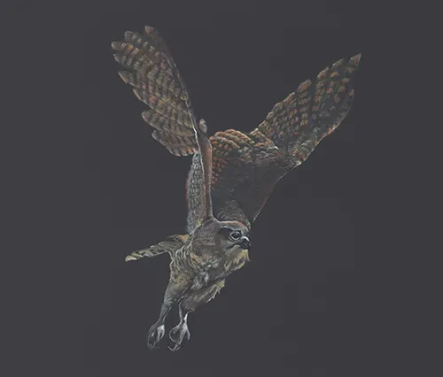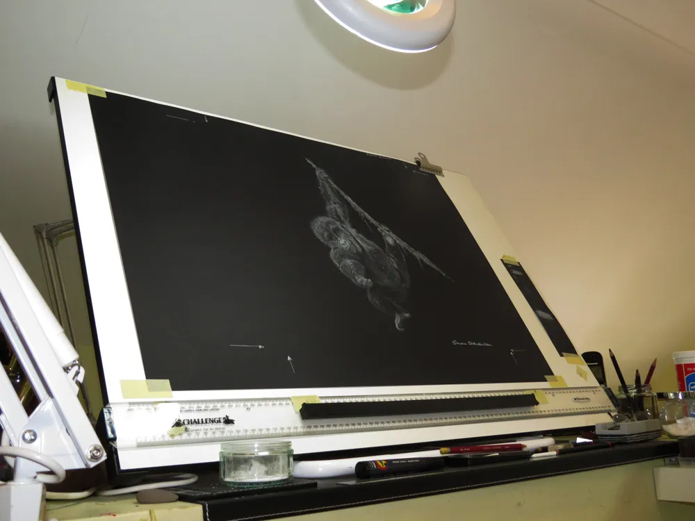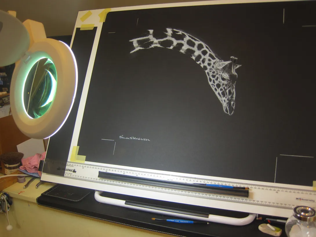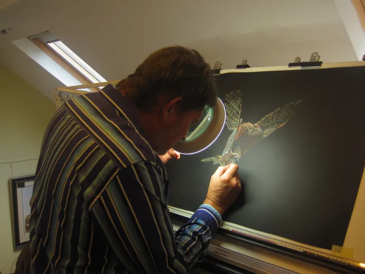 Sketching the Pels Fishing owl using a Magnifying light.