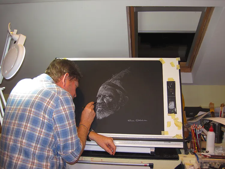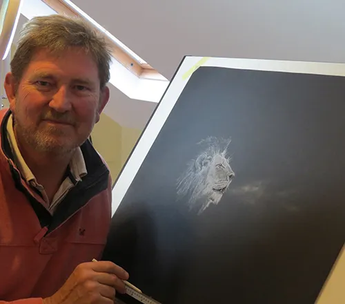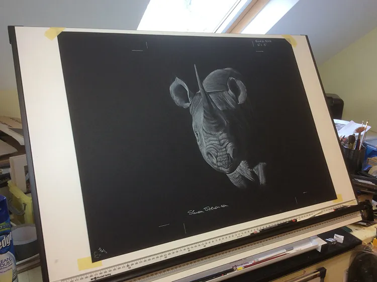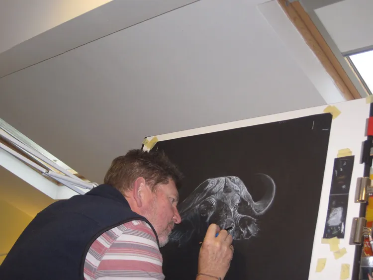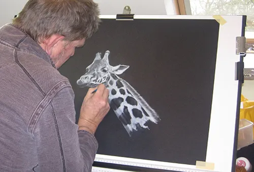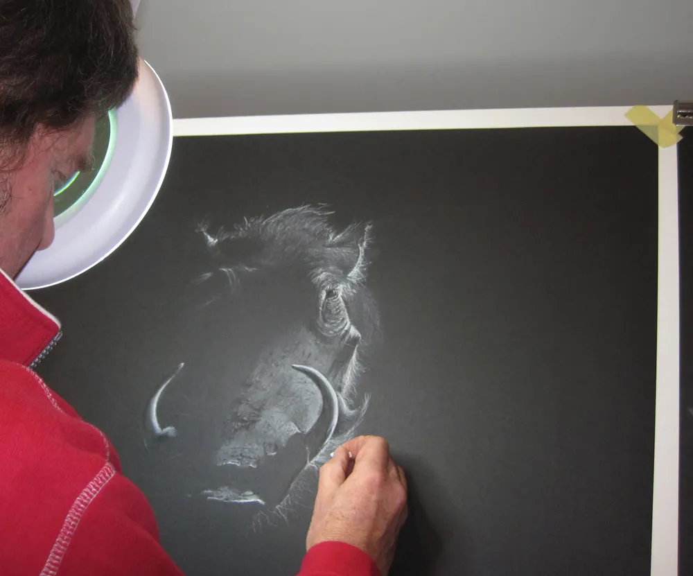 Chalking in the finer details.
