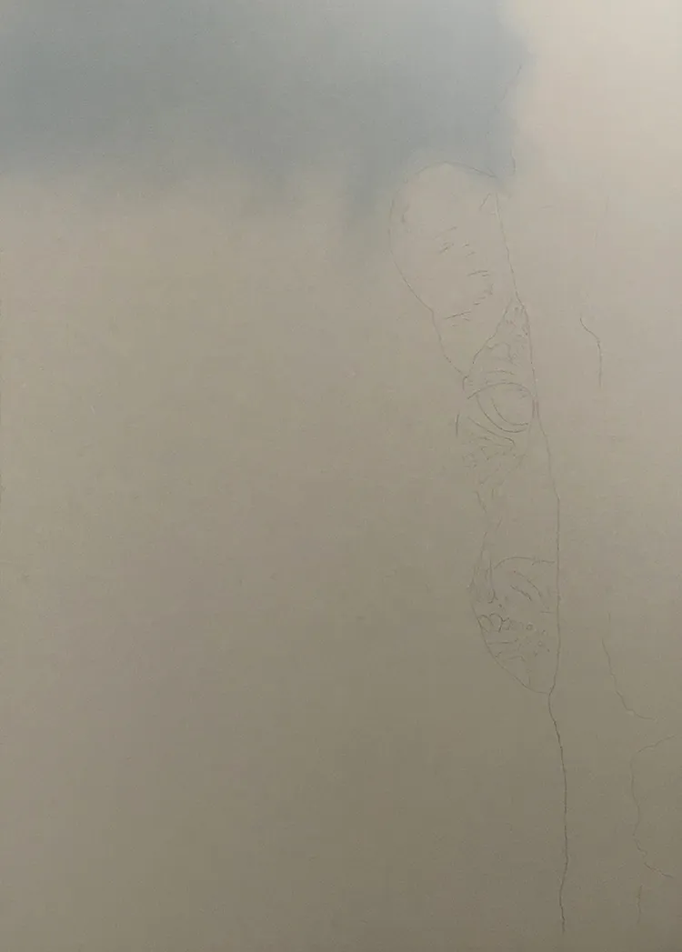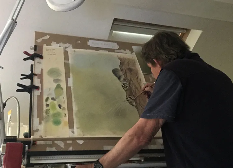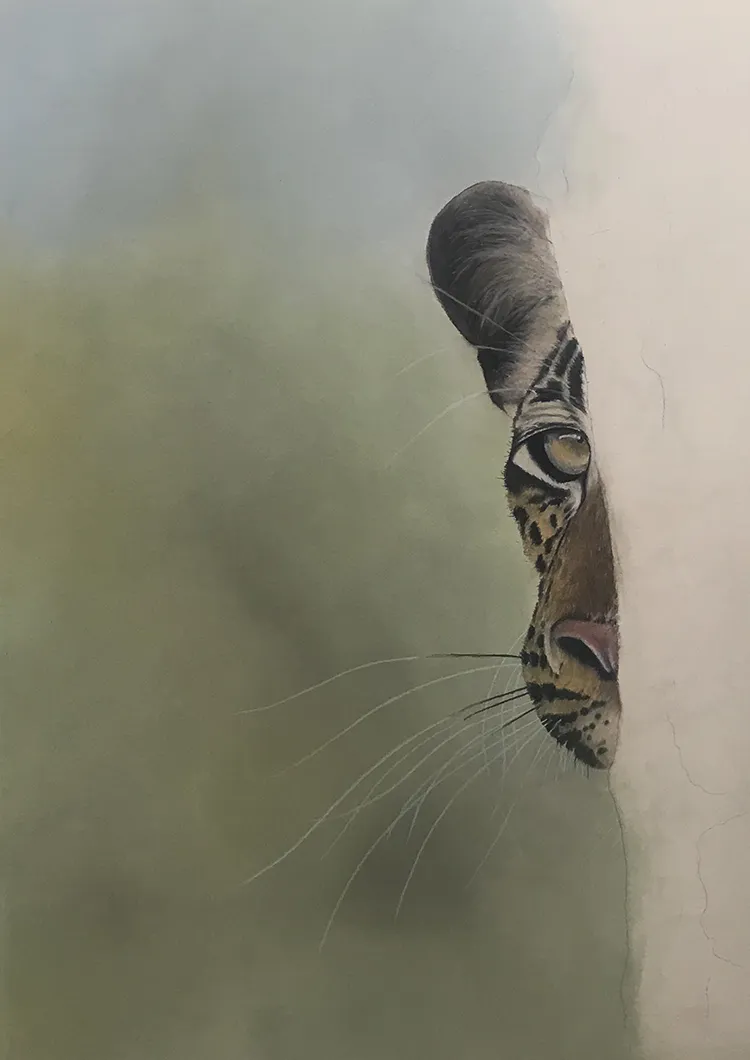Nearly finished the leopard peeping around the corner, will then add the bark of the tree on the right side of the image