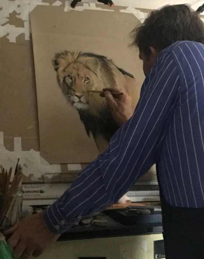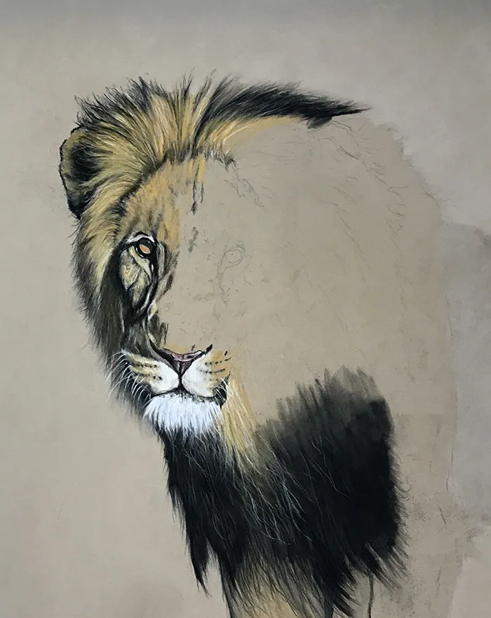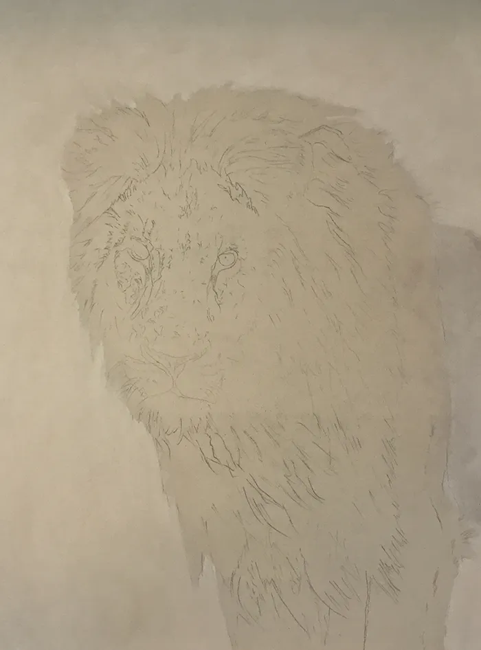 I started this portrait of the lion by lightly sketching in some rough outlines