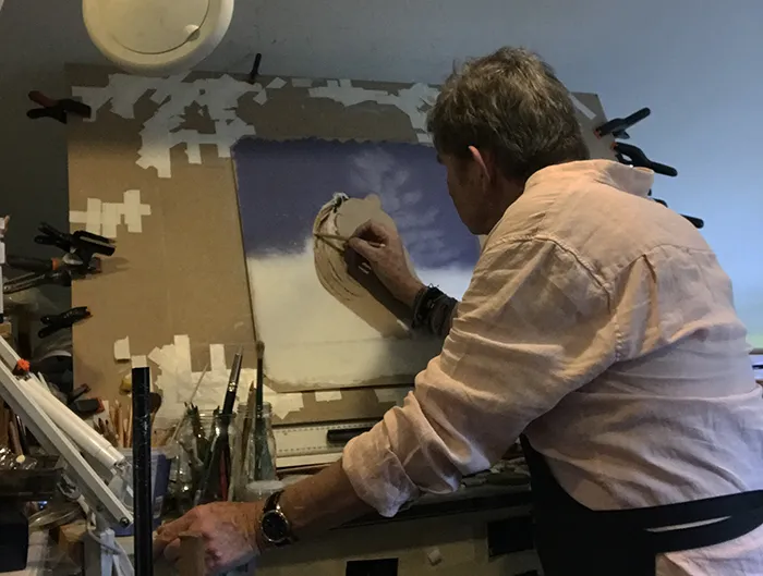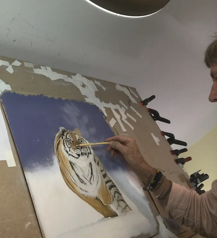 Here I'm adding the bits of flying snow whilst working from my no 1 Easel
