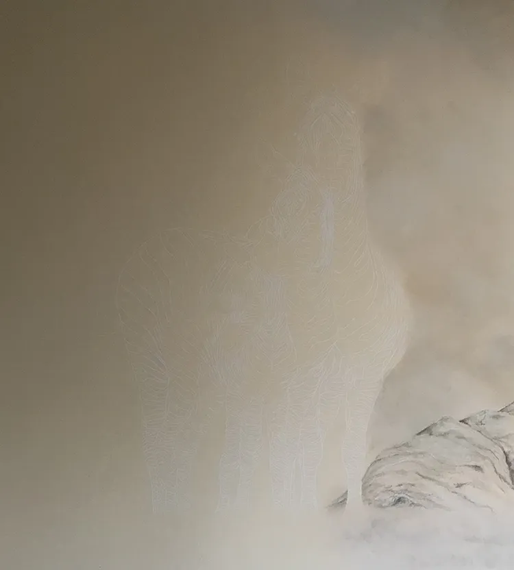 Chalking in the white of the stripes as I fill in more of the mare's head and neck