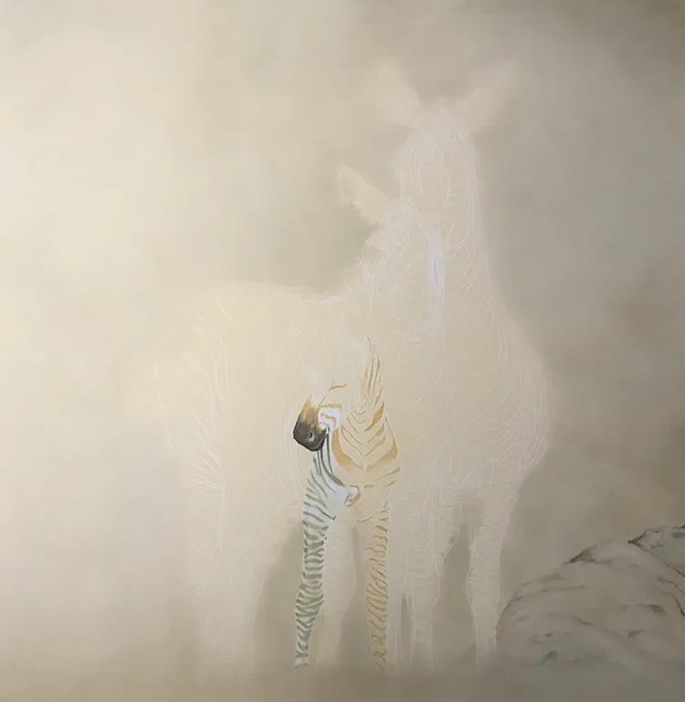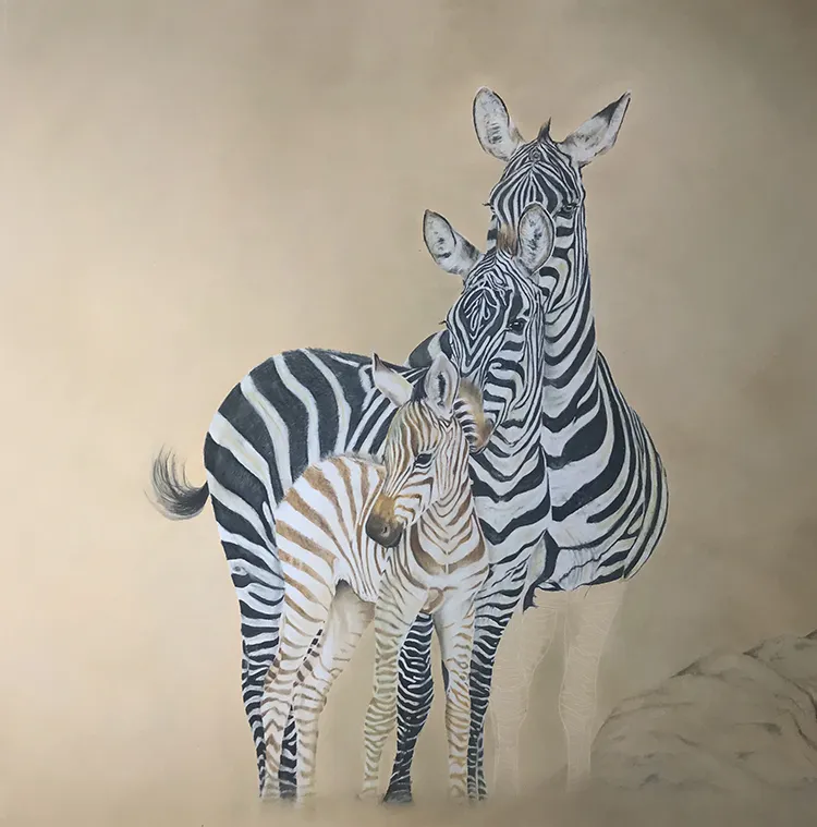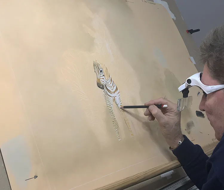 Starting to sketch and fill in the stripes of the two back zebra which tend to darken with age.