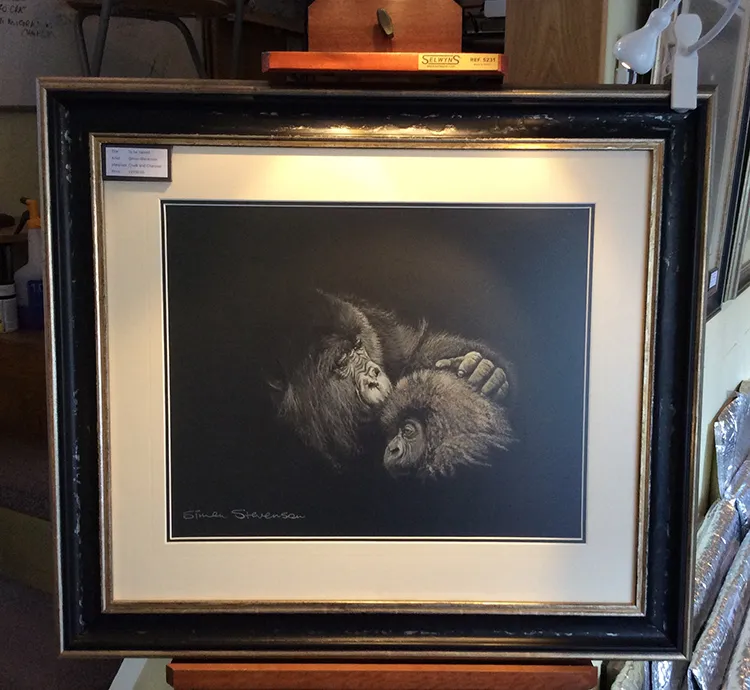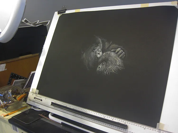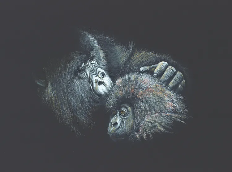 Over a week, I sketched an image of a female mountain gorilla and her youngster from a photograph taken by up and coming photographer Oliver Nicklin. Your job was to give it a name and the person with the winning title for the finished sketch received a signed limited edition print.