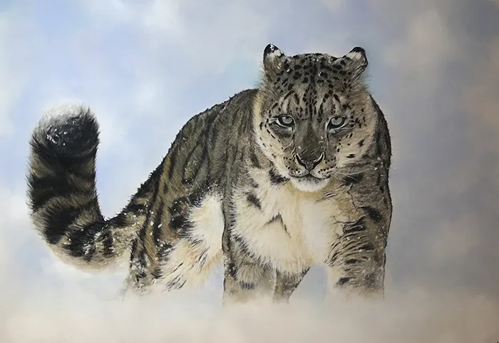 This is an image of a rare adult snow leopard slowly ploughing it's way through deap snow. It's another sketch that I've attempted of an animal that I've not had the privilege of seeing in the wild and is the second in my World Leopard series.