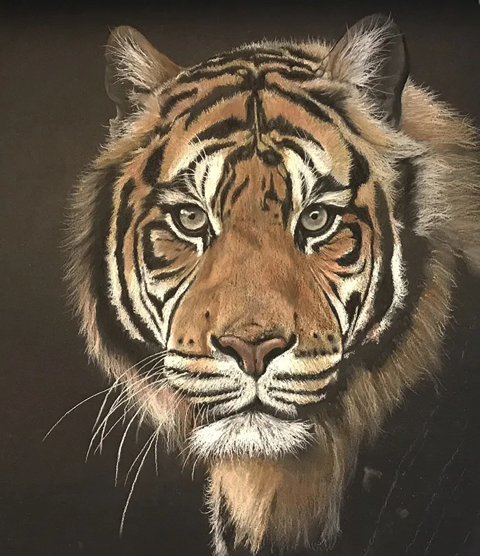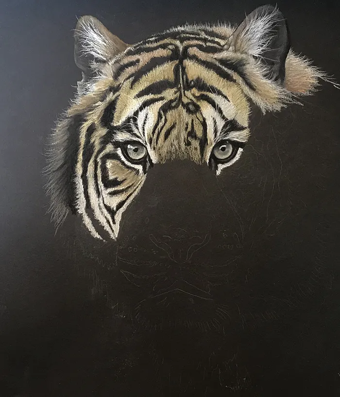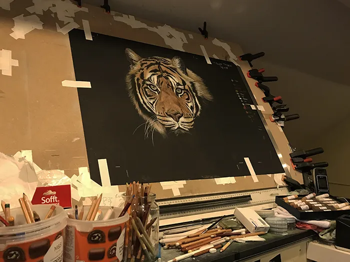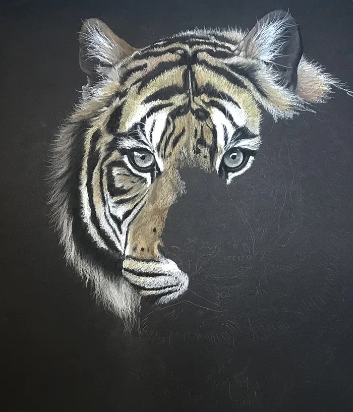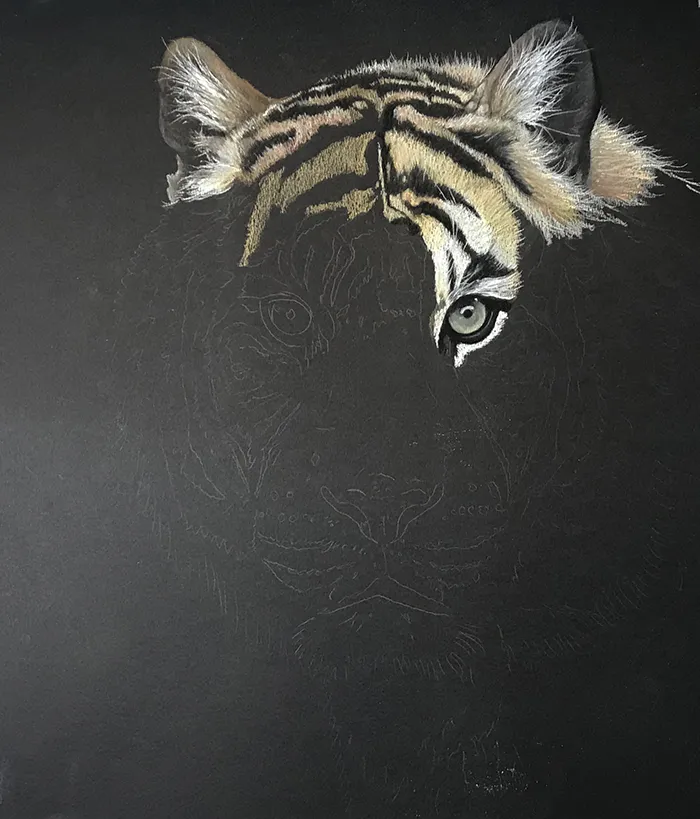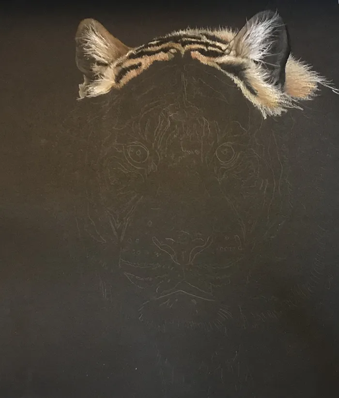 I'm adding highlights to the brow of the tiger as it stares at me!!