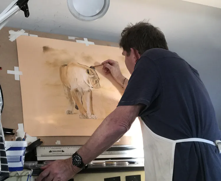 Gradually the lioness's features and tones are beginning to take shape