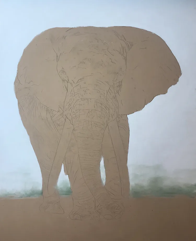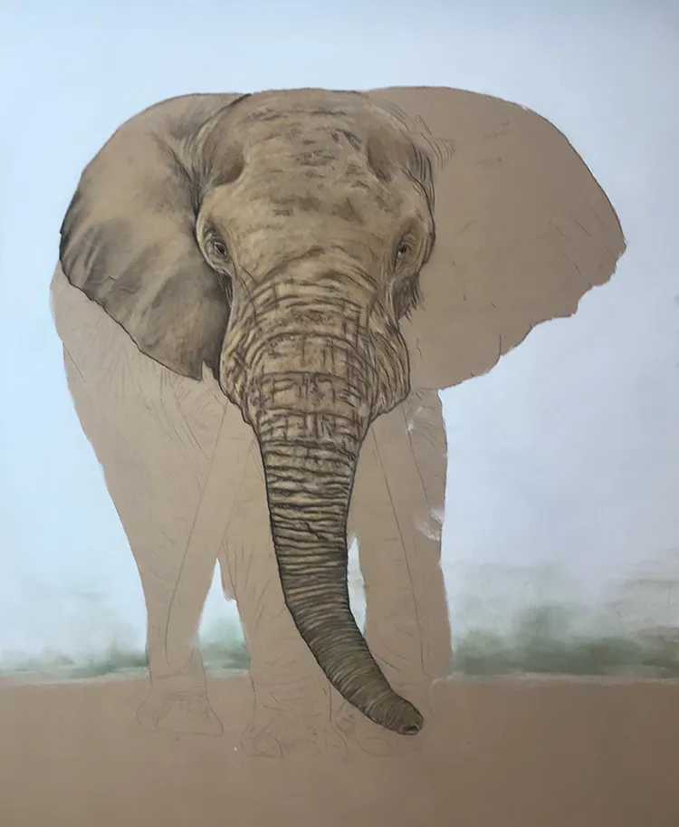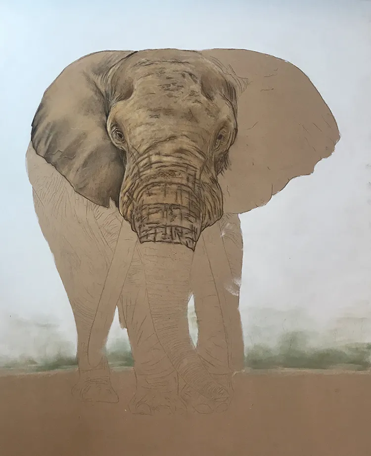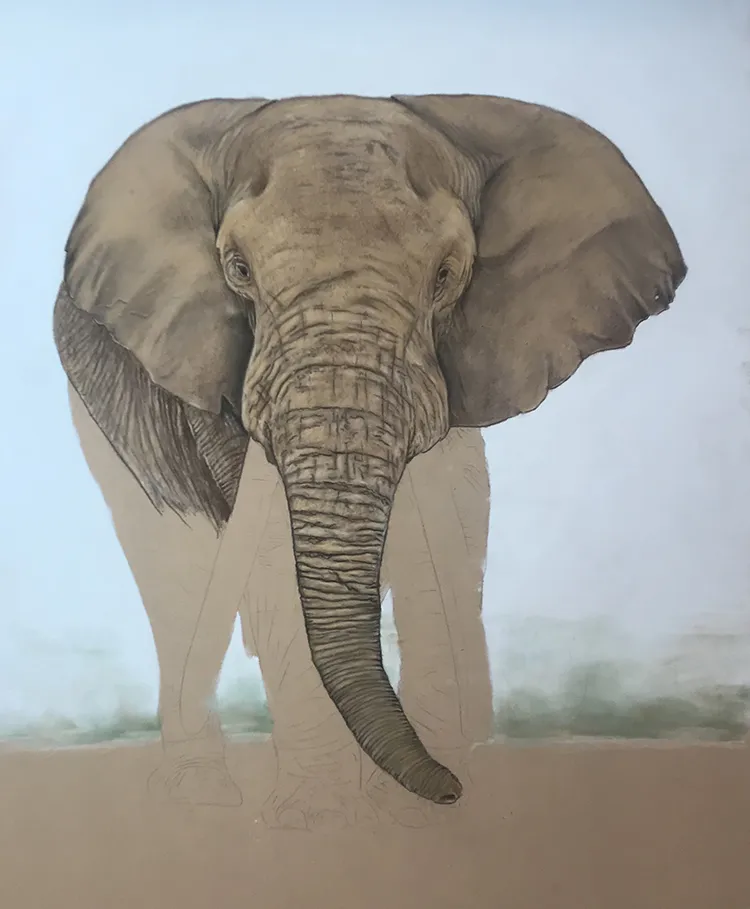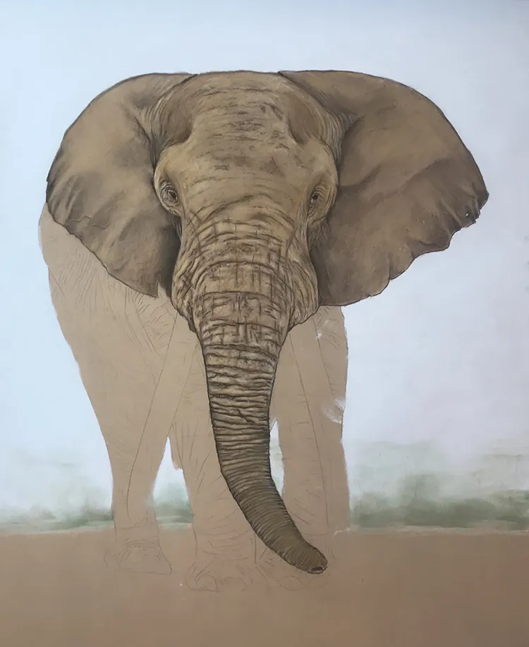 I gradually started to fill in his leading leg and then moved to his distinctive left tusk