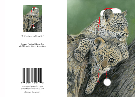 Click to enlarge A Christmas Bundle A couple of leopard cubs playing in a tree Product NameQuantityPrice Christmas card (single) AU$ 1.75Add to Basket The image has been sketched using Pastels MINIMUM ORDER of (SIX CARDS PICK & MIX) The inside of the card has been left blank for your own message